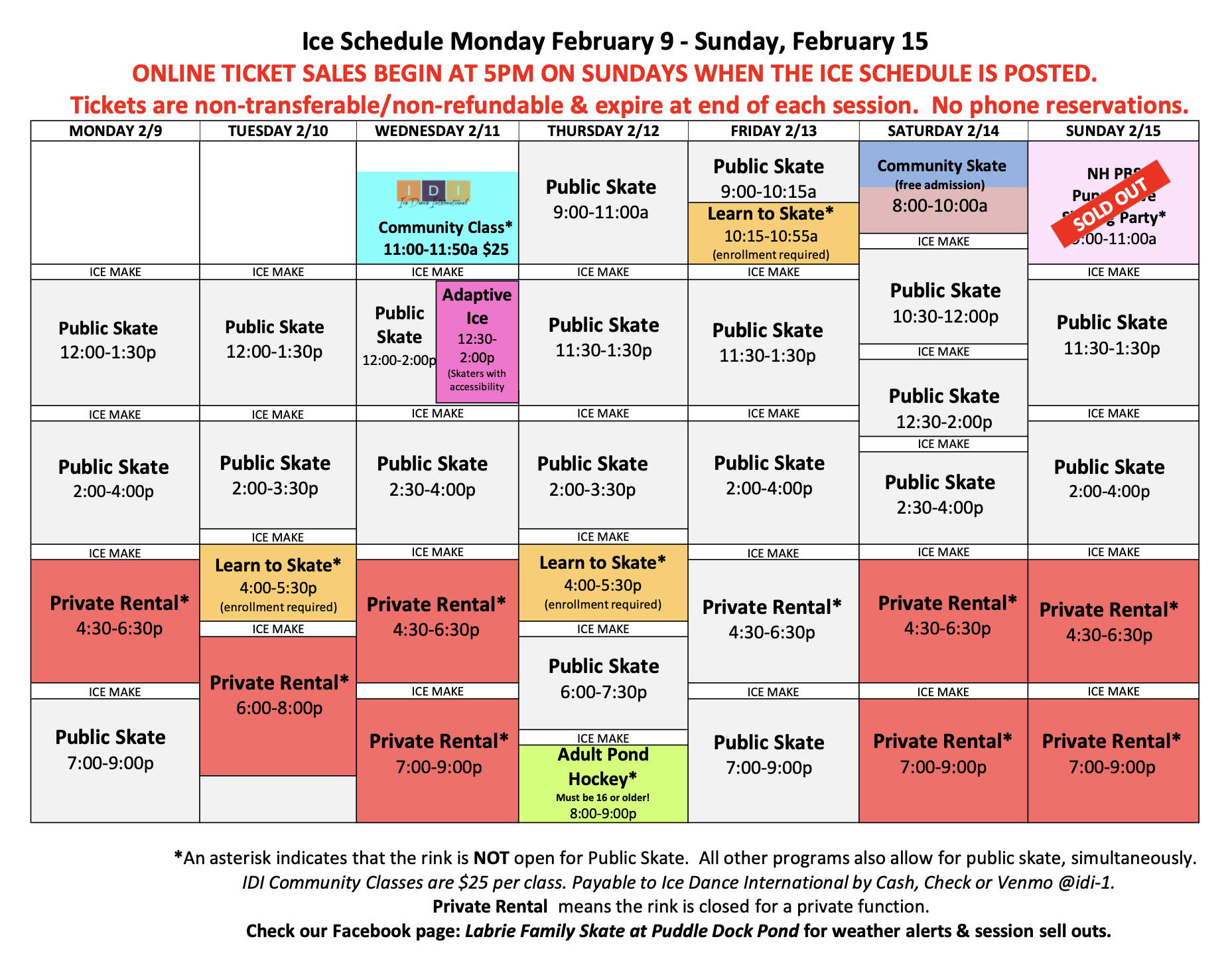 Weekly Ice Schedule