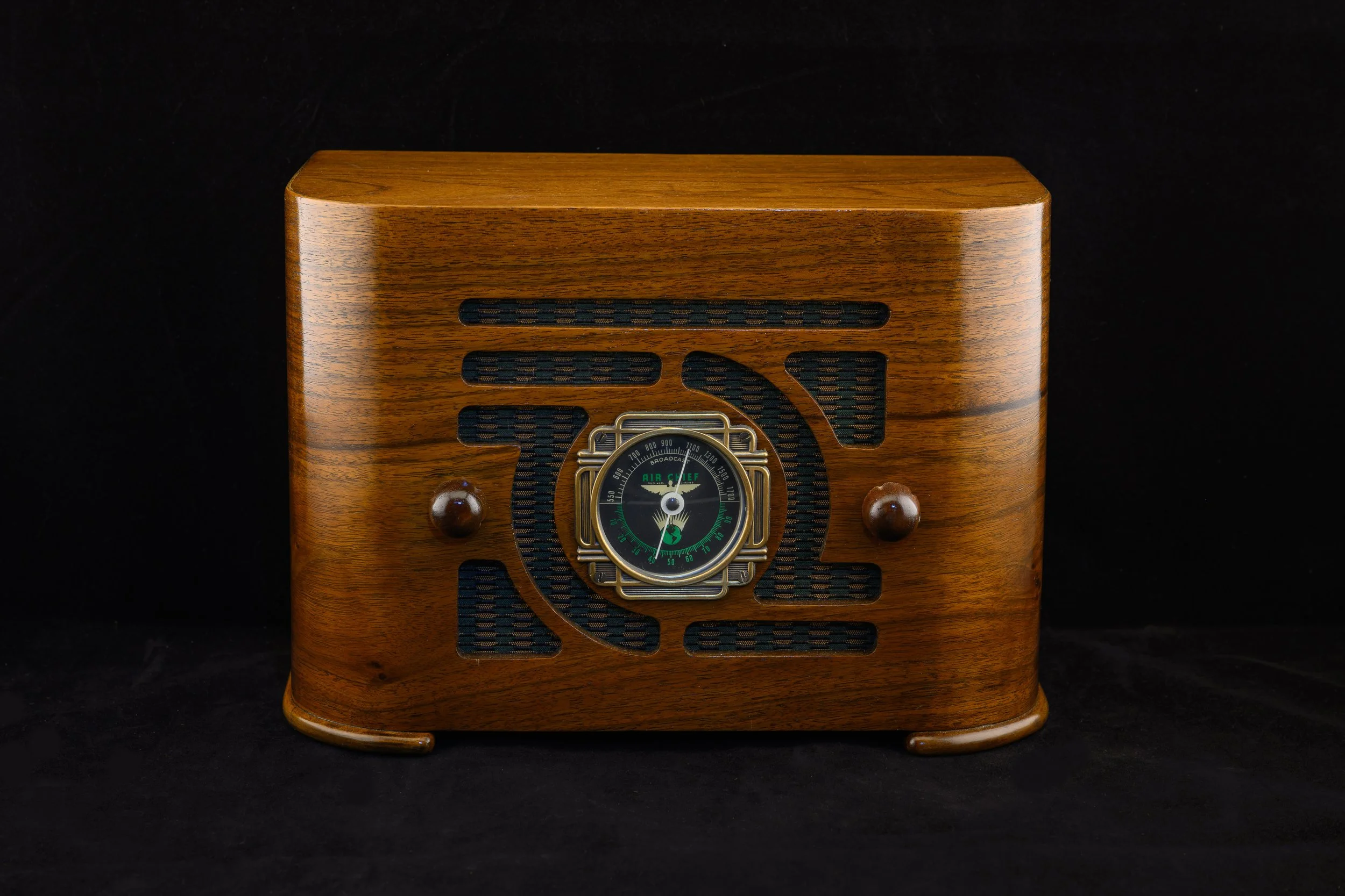Period radio fitted with a Bluetooth speaker to play jazz, music the Richardson family loved. Collection of Strawbery Banke Museum (Accession No. 2025.20.1).